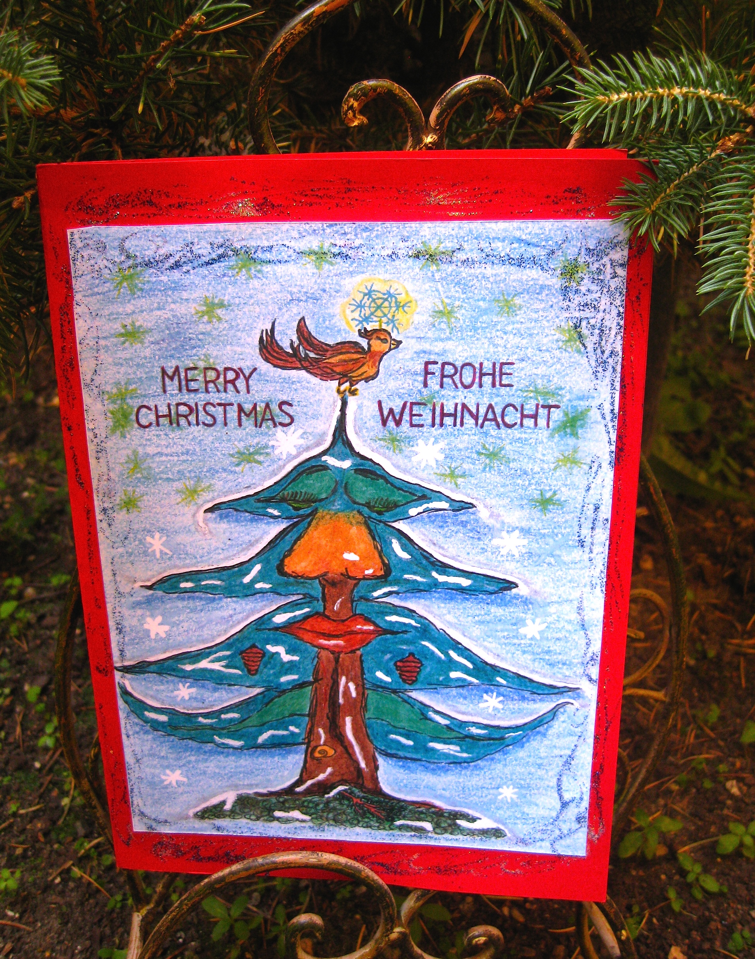 XMAS Karte Baum rot Ständer 2 B